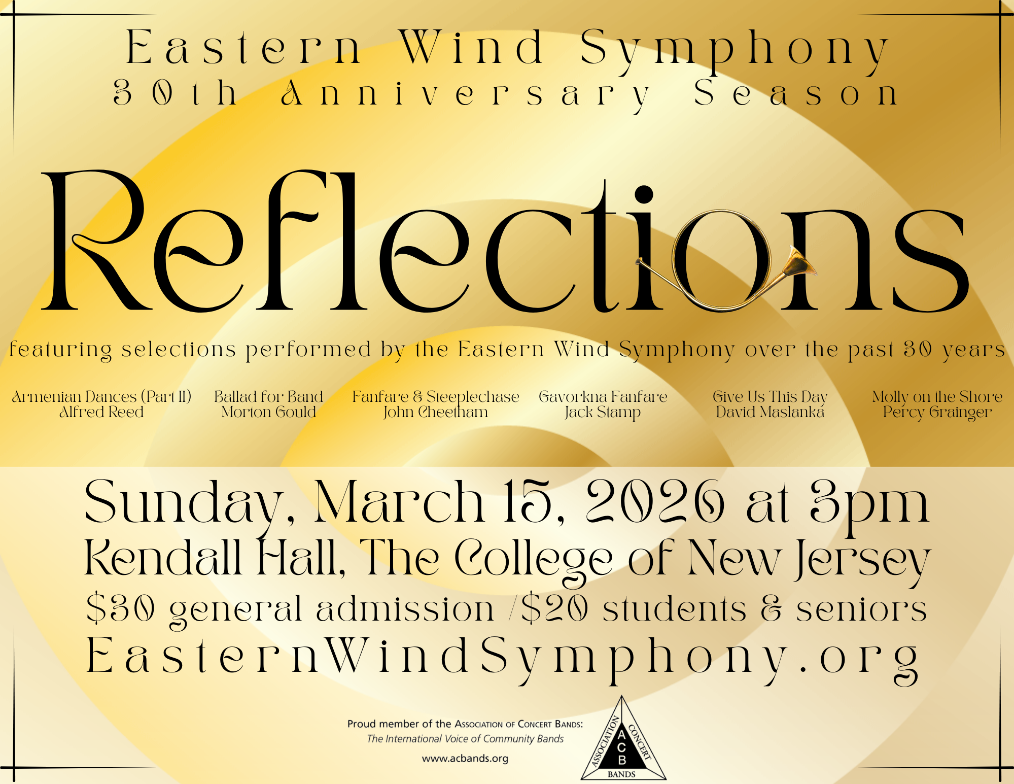 Tickets are now available for the March 15, 2026 Performance at 3pm in the auditorium at Kendall Hall on the campus of The College of NJ.